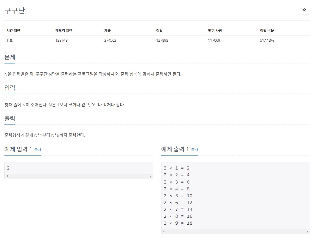 1일차는 가볍게 구구단 푸는 문제부터 시작했다.