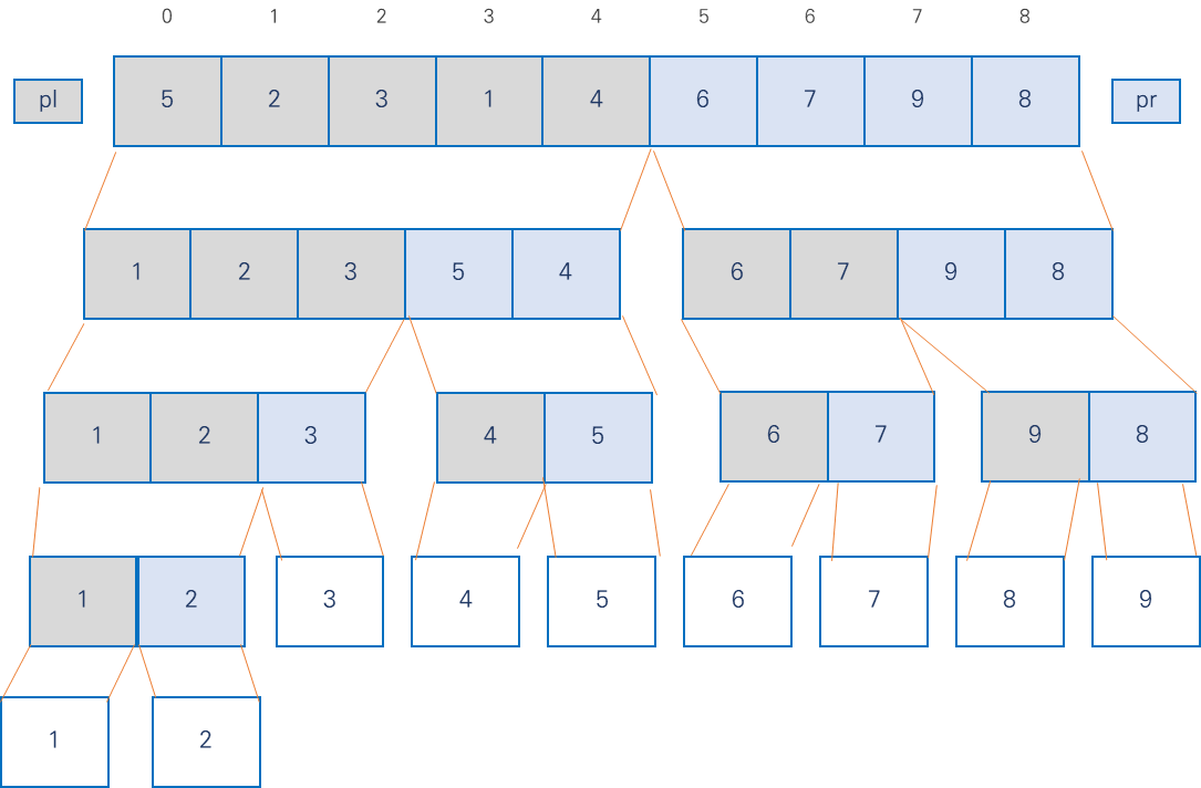 이렇게 그룹을 나누는 작업이 끝난 다음 pl > pr +1 이면 다음과 같은 그룹이 생기게 된다.